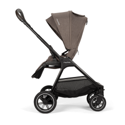 La capota con protección UPF 50+, la icónica Dream drape™ de Nuna, y la cubierta para la lluvia incluida proporcionan una mayor protección contra los elementos y propician las siestas ininterrumpidas. Los botones de liberación integrados y el asa de transporte de polipiel cosida a mano facilitan el desmontaje del chasis del cochecito, porque los padres y las madres ya tienen bastante entre manos.